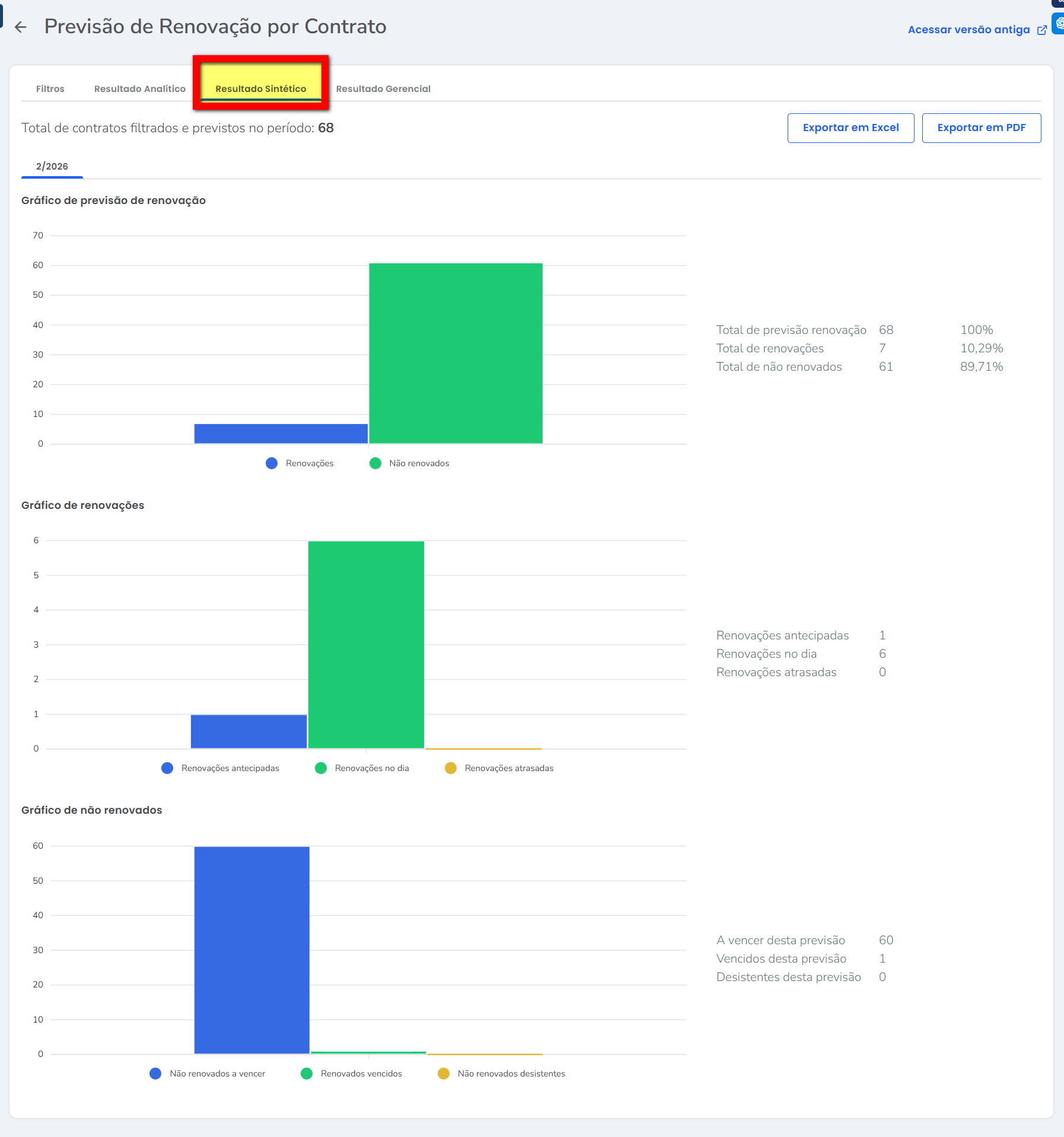 • Renovação antecipada: marque esta opção para apresentar no relatório os contratos que tiveram a renovação realizada de forma antecipada;