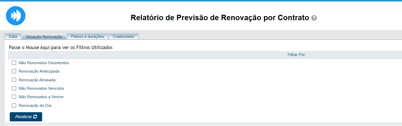 - Planos: caso deseje visualizar a situação de renovação por plano em específico, marque o checkbox a frente dos nomes dos planos desejados;