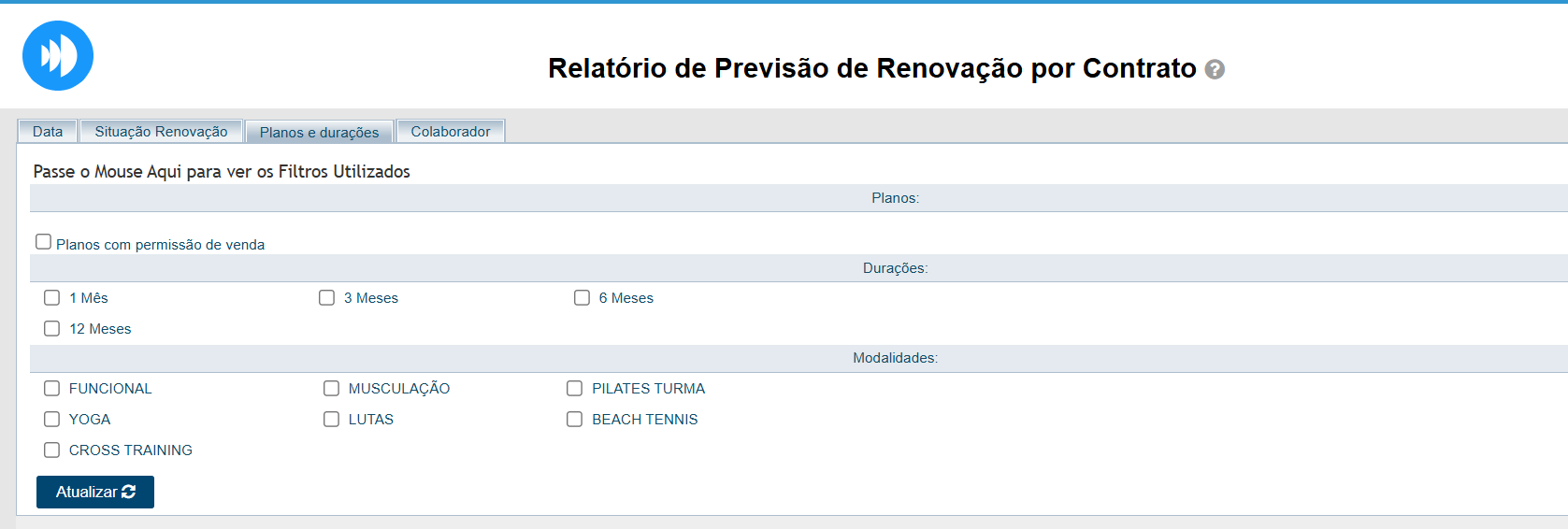 - Durações: caso deseje visualizar a situação de renovação por duração, marque o checkbox a frente da duração desejada;