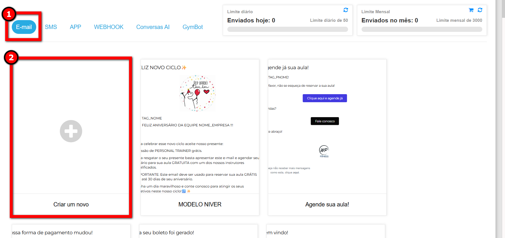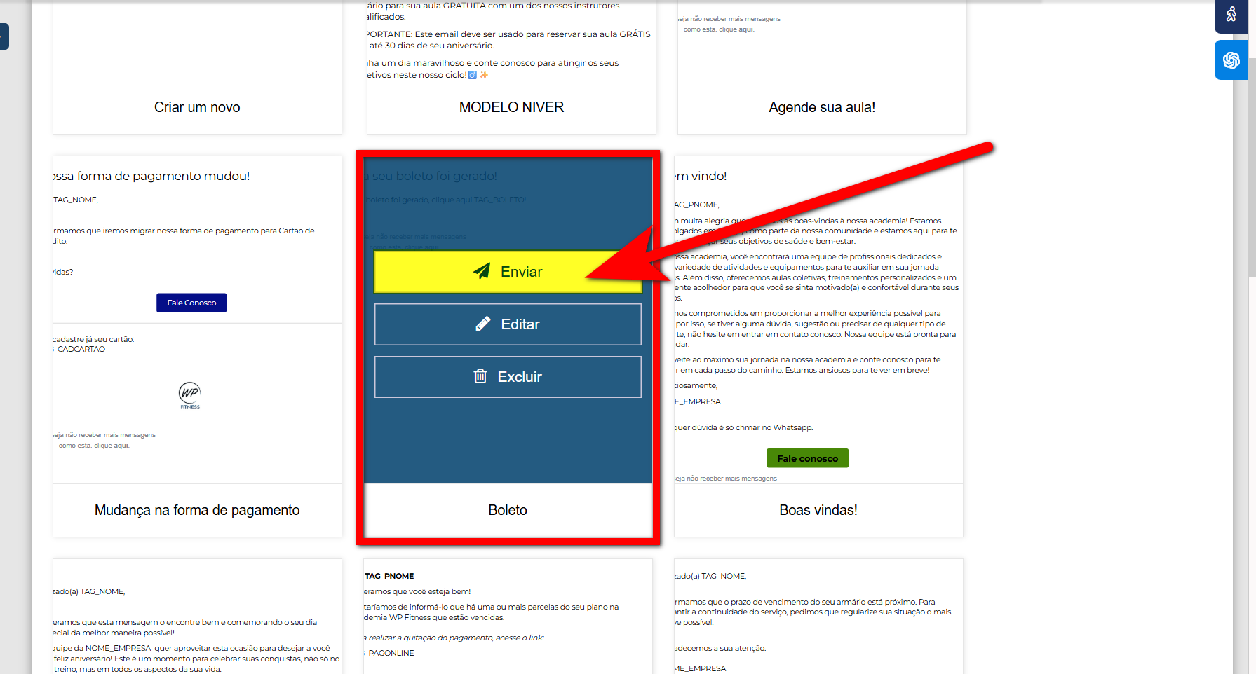 2.1. Caso já tenha algum modelo de mensagem criado anteriormente, basta clicar sobre ele e escolher a opção.