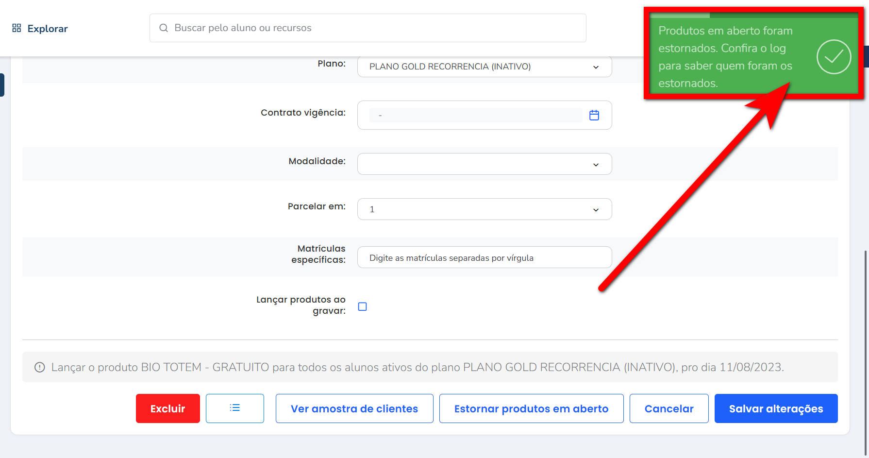 Atenção: só irá estornar os produtos que ainda estiverem em aberto, ou seja, os que já foram pagos, não poderão ser estornados por este recurso.