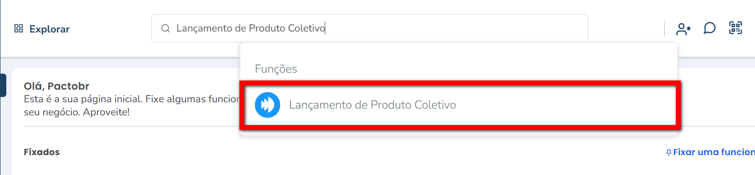 1. Na lupa de busca pesquise por “Lançamento de produto coletivo“;