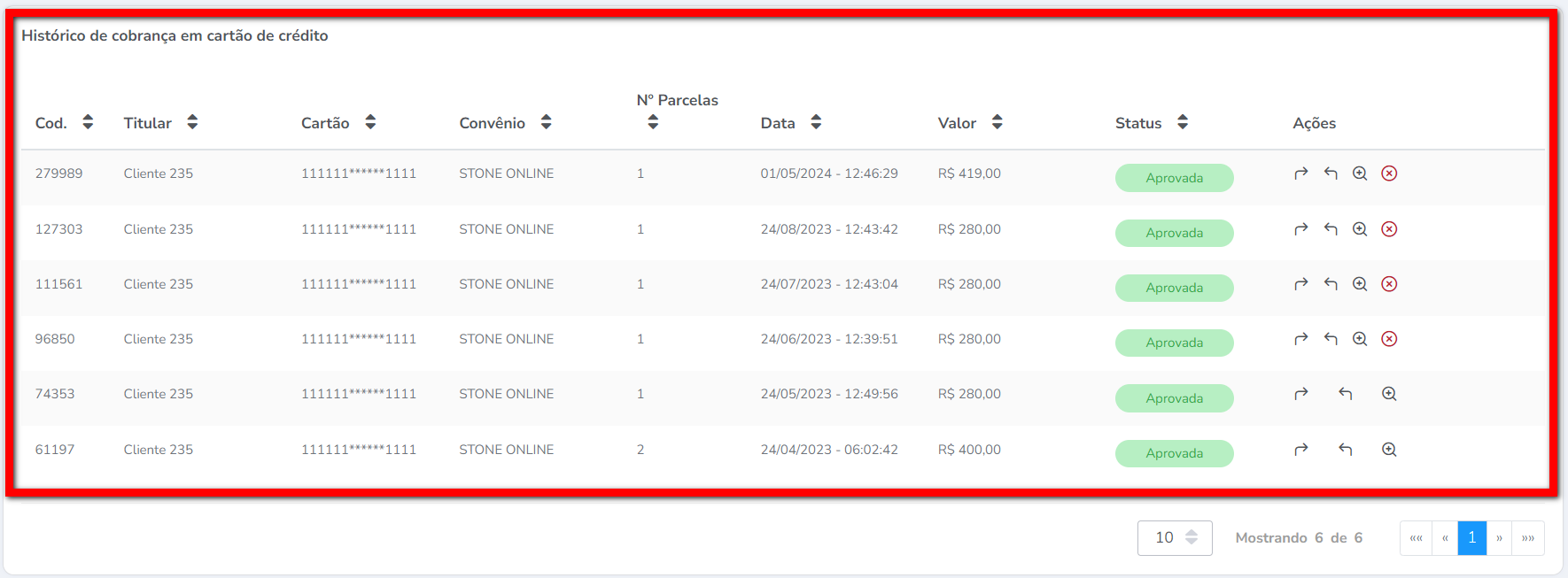 3. Identifique a cobrança aprovada que deseja cancelar/estornar;
