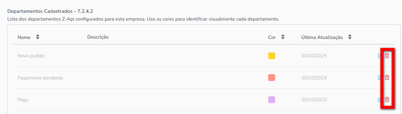 8. Na sessão “Departamentos Cadastrados – 7.2.4.2” serão apresentadas todas as etiquetas cadastradas;