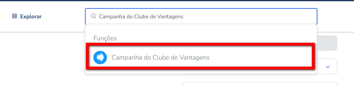 1. Acesse o módulo ADM e na lupa de busca pesquise por “Campanha do Clube de Vantagens“;