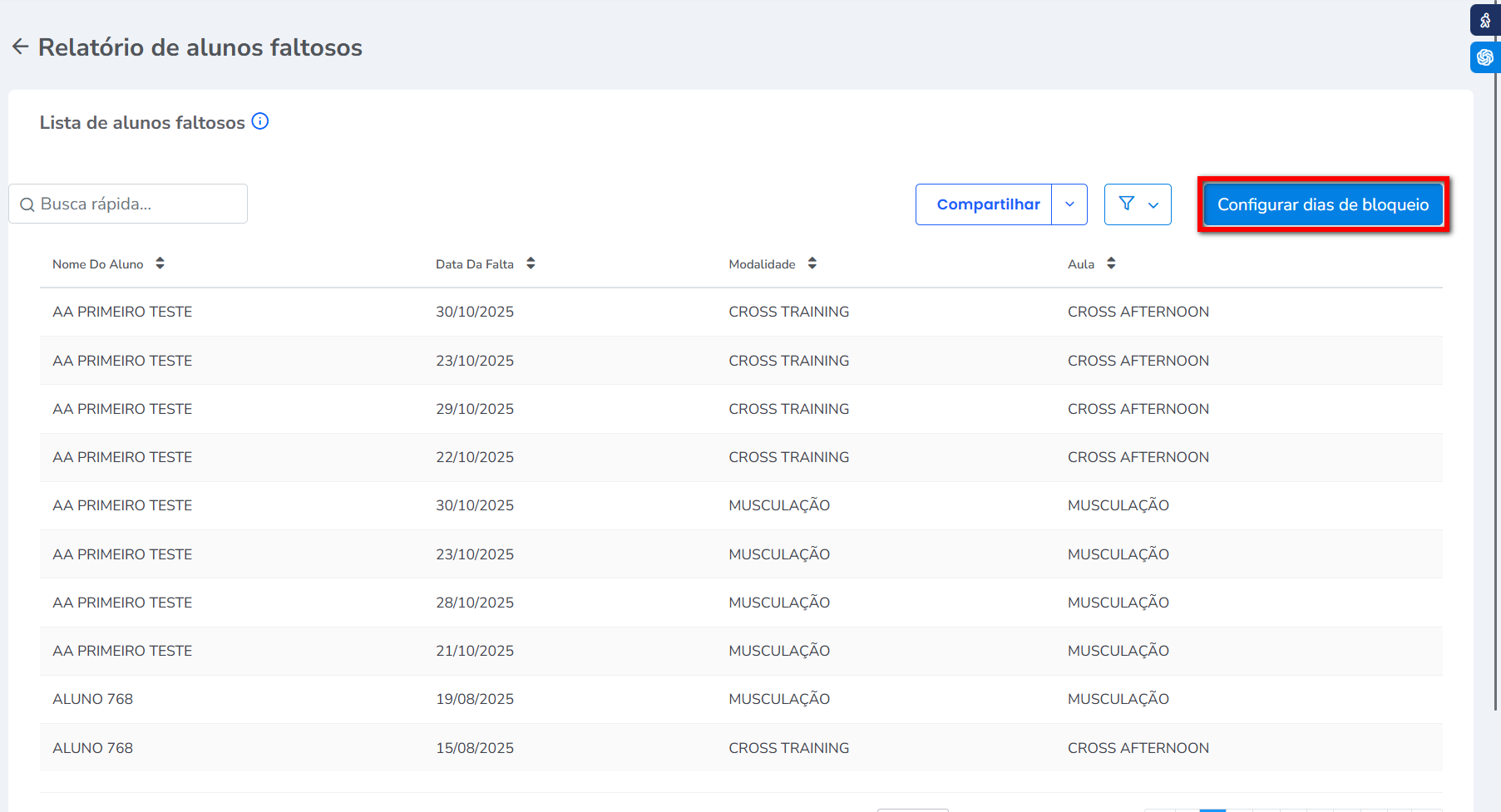 Para saber como bloquear o agendamento de aulas para alunos faltosos, clique aqui.