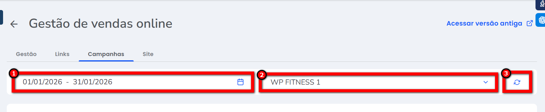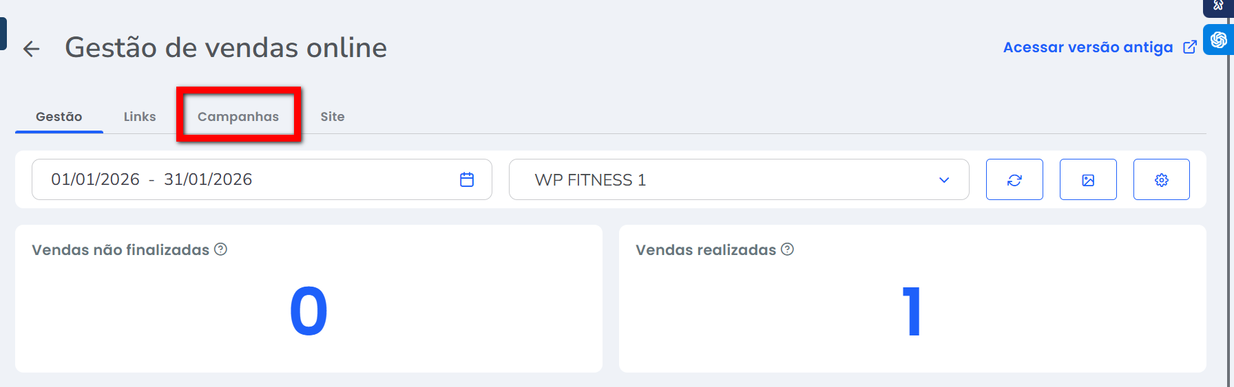 1. No vendas online clique na guia “Campanhas“;