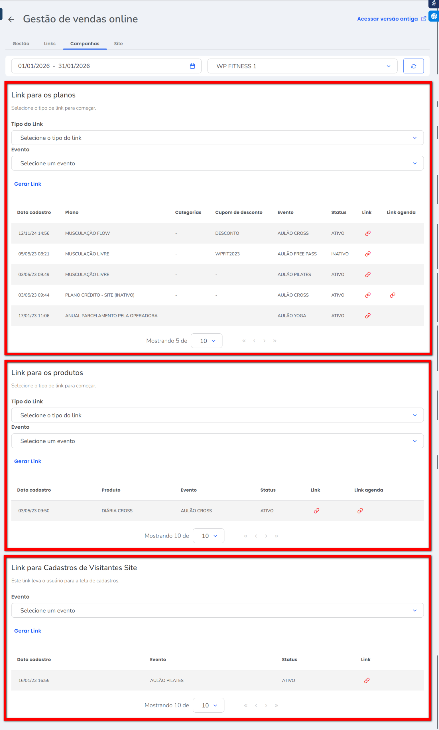No Vendas Online, é possível gerar links específicos associados a campanhas.