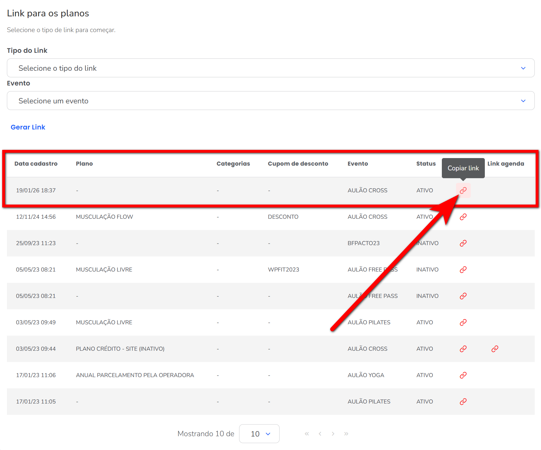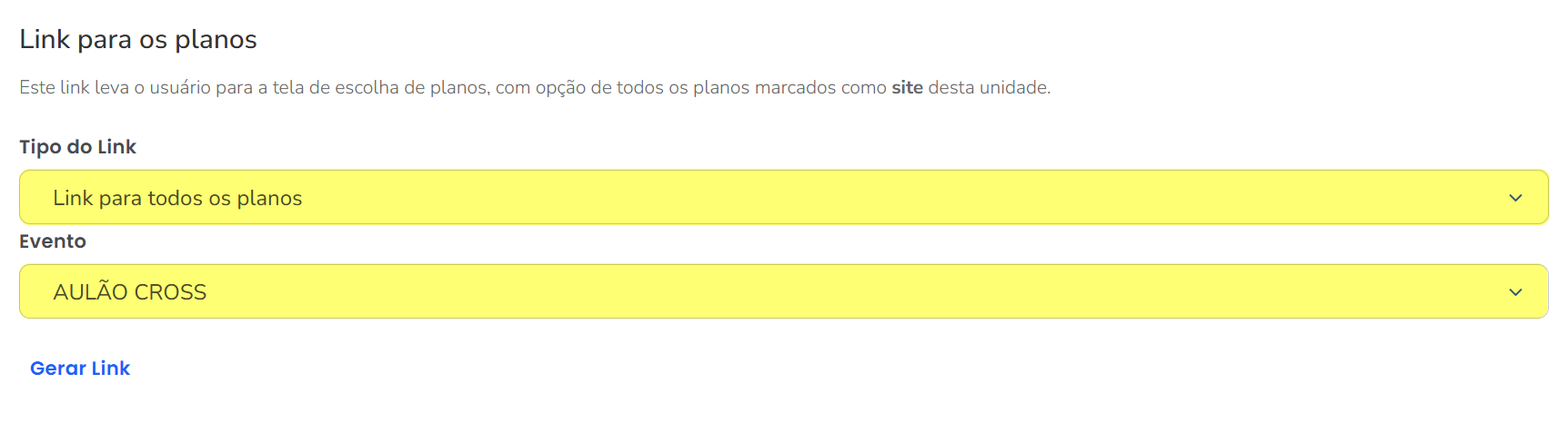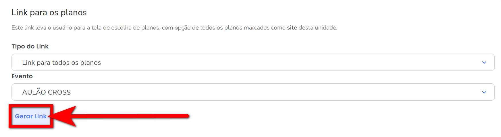 3.1. Para planos, basta escolher o tipo de link e o evento associado;