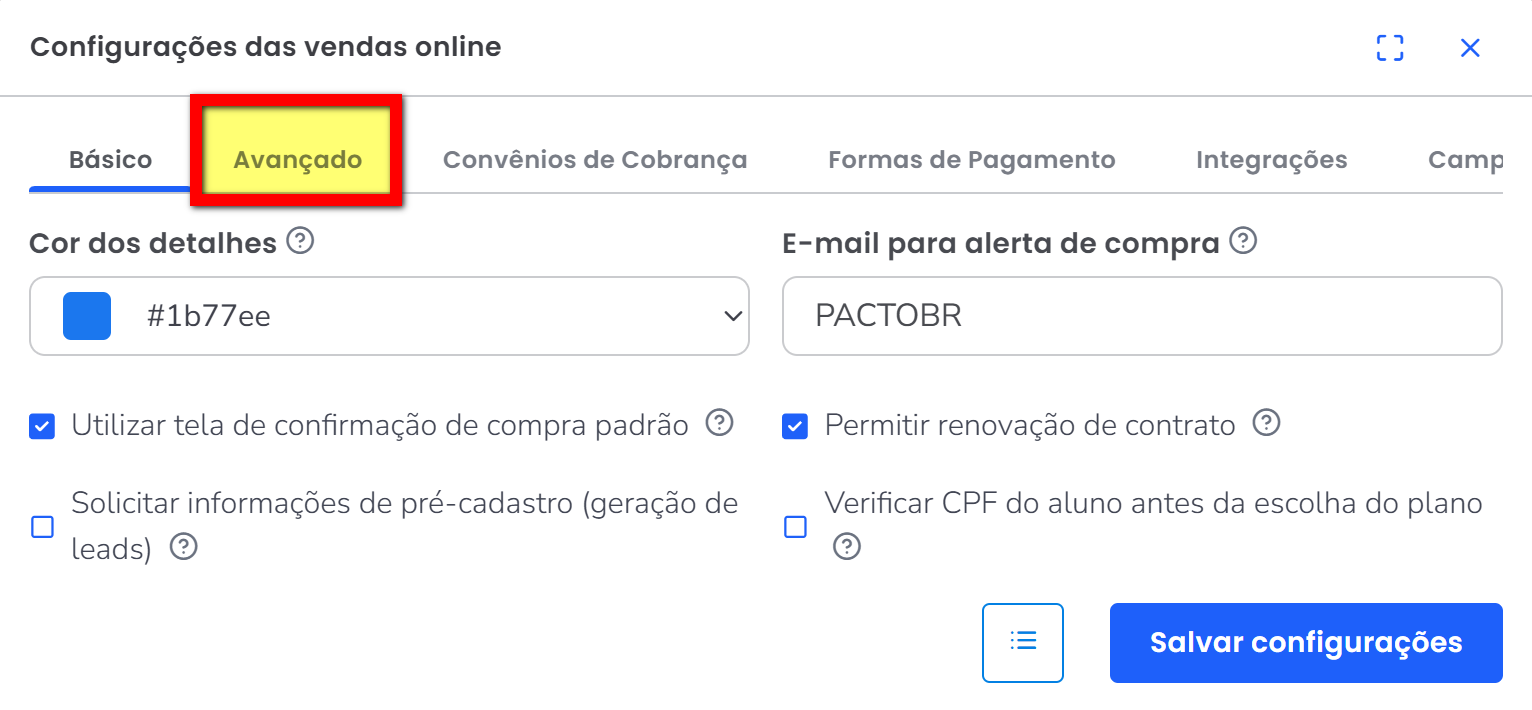 Para saber como configurar o seu vendas online, clique aqui.