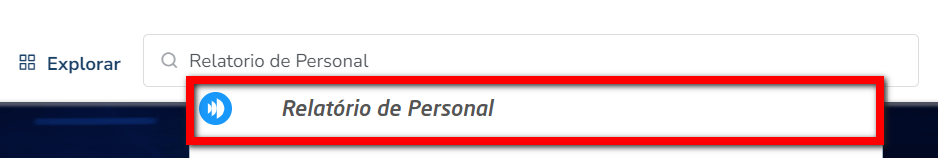 1. Acesse o módulo ADM, e na lupa de busca pesquise por “Relatório de Personal”;