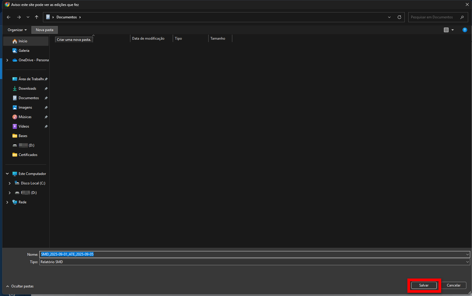 4. Pronto o relatório SMD, foi baixado e já pode ser importado no SMD.