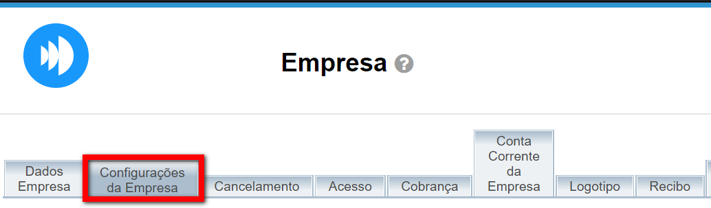 2. Após selecionar a empresa, clique na guia “Configurações da Empresa“;