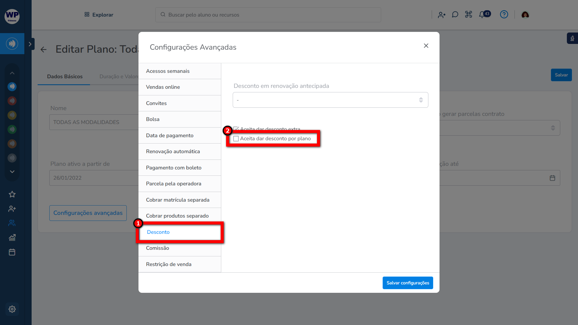 Para saber como configurar desconto extra no cadastro do plano, clique aqui.