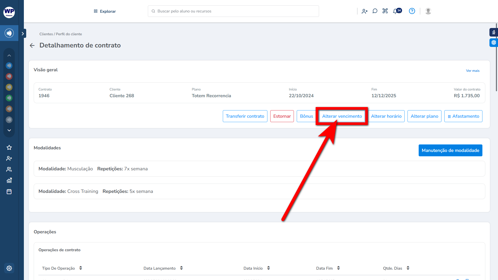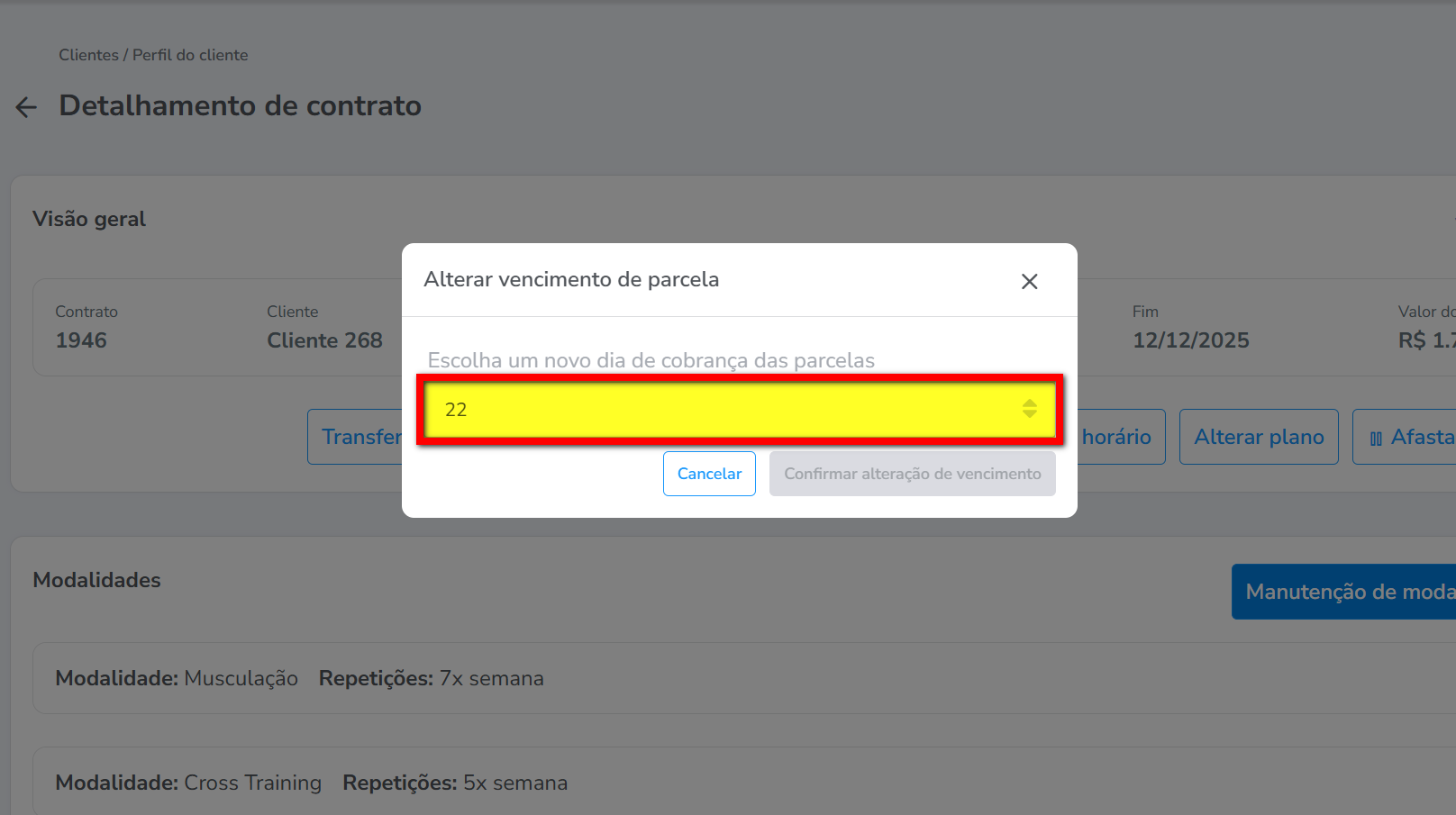 O recurso de alteração de vencimento foi criado especificamente para os clientes que fazem uso de planos do Tipo Recorrente, simplificando o procedimento de modificação da data de cobrança no cartão de crédito ou conta corrente do aluno, oferecendo maior conveniência ao usuário.