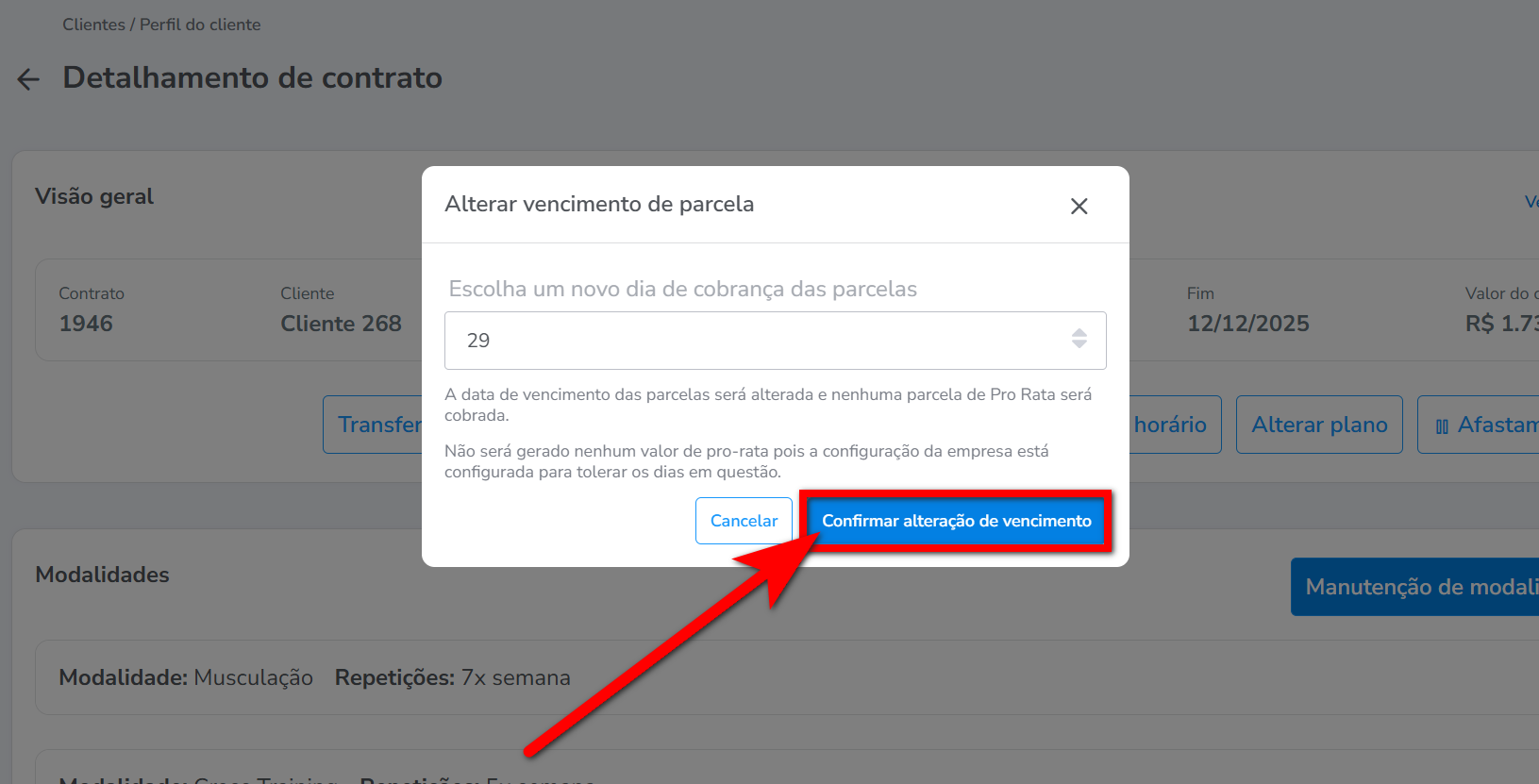 4. Clique em “Confirmar alteração de vencimento” para concluir o processo.
