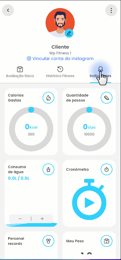 Aqui, o aluno adiciona o Instagram ao perfil do App Treino. Isso facilita para que outros alunos e professores encontrem a rede social dele de forma rápida.