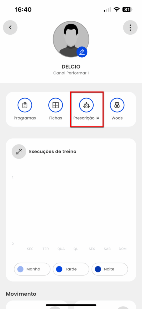 Para saber como trabalhar com prescrição de treino por IA, clique aqui.