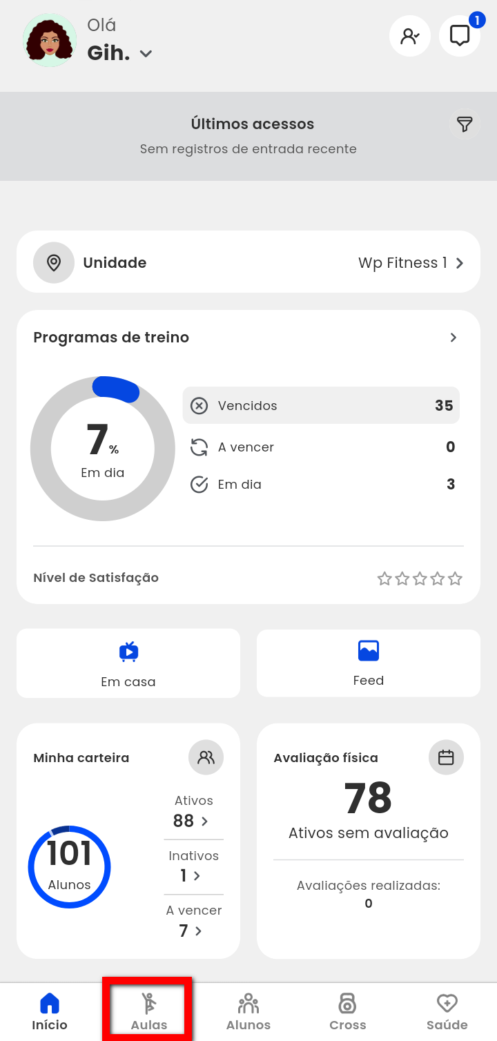 1. Na tela do aplicativo clique no menu “Aulas“;