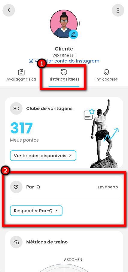 2. Em seguida, deve clicar em “Histórico Fitness” e depois clicar em “Responder Par-Q“;
