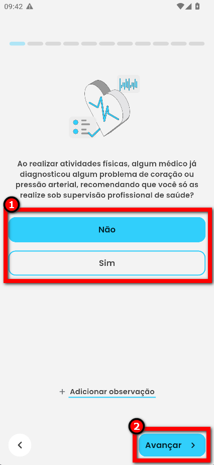 Existem duas formas do aluno responder o formulário Par-Q, ao acessar o aplicativo e também após acessar.