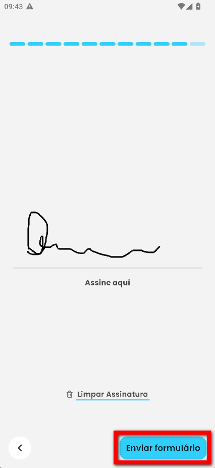 3. Após responder todas as questões do formulário ele deve assinar e clicar em “Enviar formulário”;