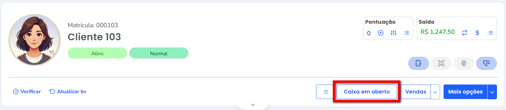 1. Ao acessar o perfil do aluno, localize e clique em “Caixa em aberto“;