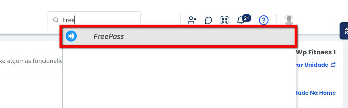 1. Na lupa de busca do sistema, pesquise por “FreePass“;