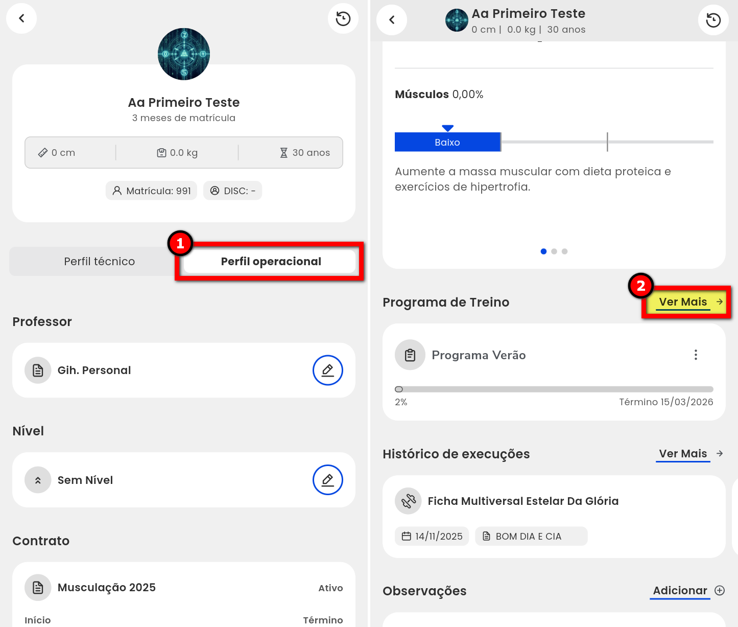 3. Na guia “Perfil operacional“, localize o campo “Programa de Treino“. Para realizar a alteração, clique em “Ver mais“;