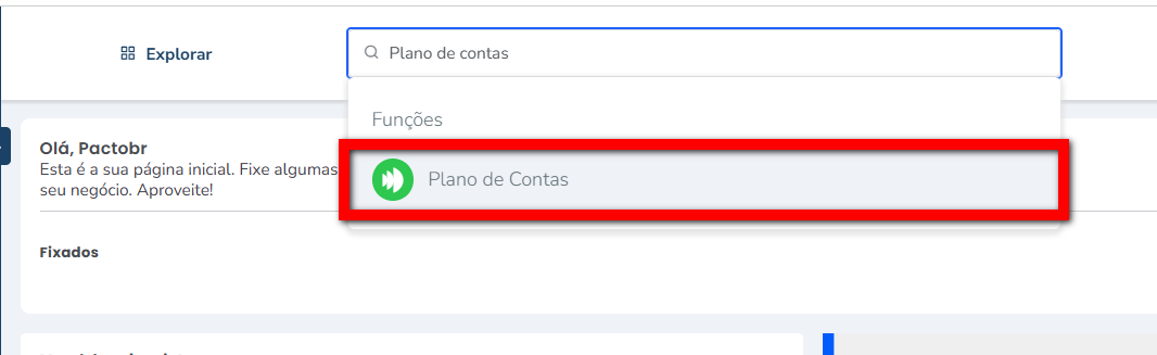 1. Na lupa de busca do sistema pesquise por “Plano de contas“;