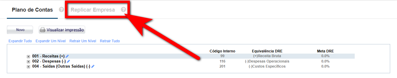 Atenção²: a função “Replicar empresa” no cadastro do plano de contas só será exibida para a unidade principal, definida no momento da configuração. As demais unidades apenas recebem essa replicação automaticamente.