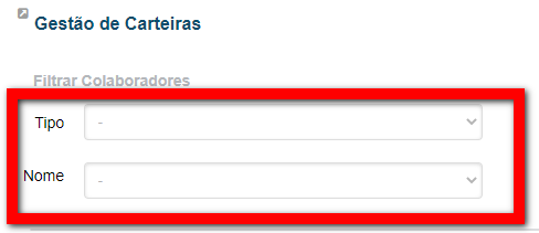 2. Na tela do “Gestão de Carteiras” selecione o tipo de colaborador e o nome dele;