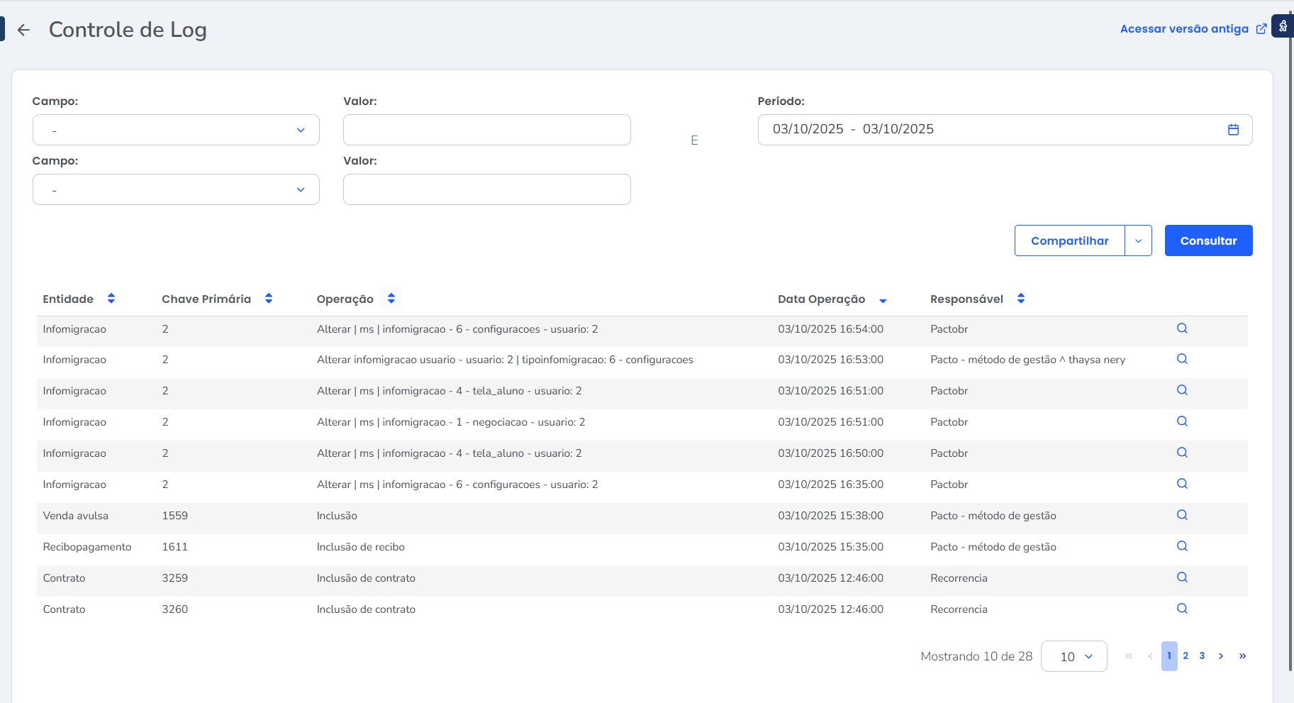 • Conteúdo do Log: descrição do que foi realizado durante a operação.