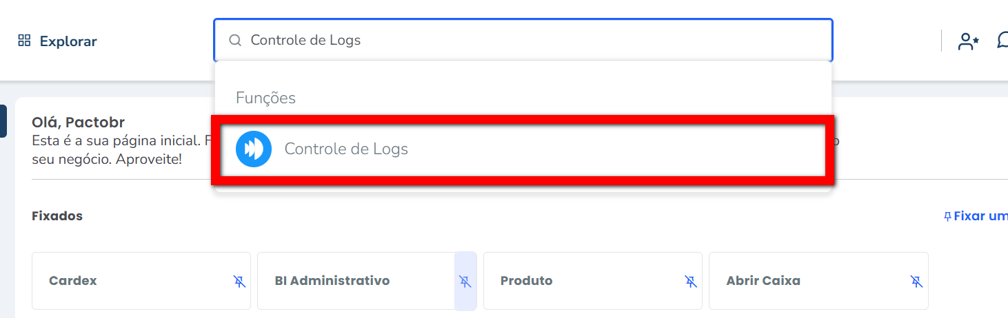 1. Na lupa de busca do sistema, pesquise por “Controle de Logs”;