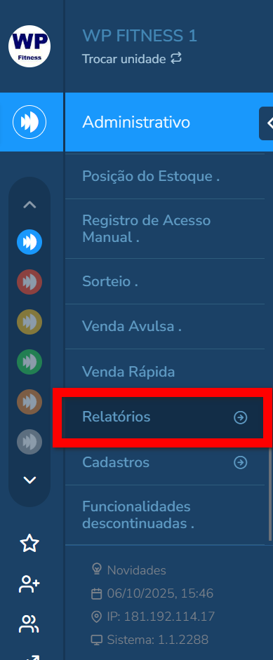 1.1. Ou através do menu lateral esquerdo do modulo ADM, clique em “Relatórios“;