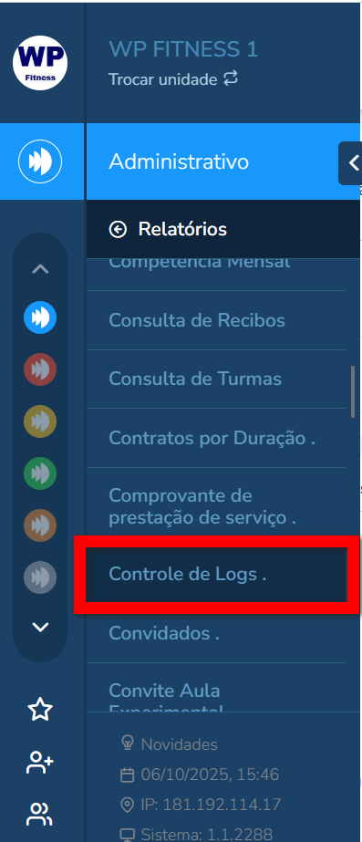 1.2. Em seguida, clique em “Controle de Logs”.