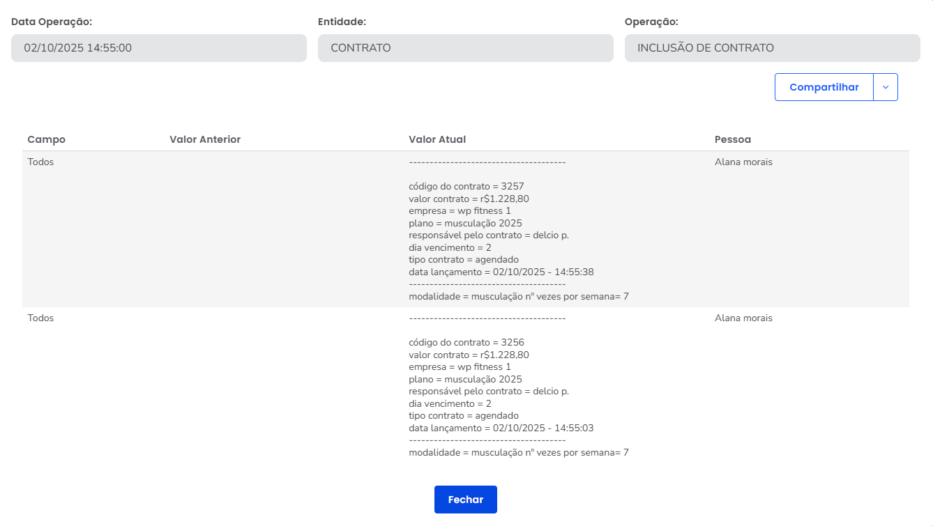 Ainda é possível determinar informações como quem foi o usuário responsável pela operação, o dia e o horário e a descrição da operação que foi realizada. Tornando assim o rastreamento das atividades do dia a dia ainda mais fáceis.