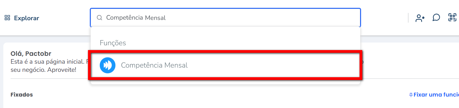 1. Na lupa de busca do sistema, pesquise por “Competência Mensal“;