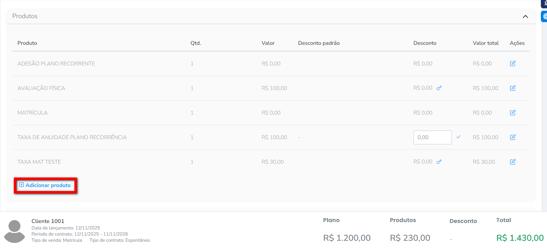 Observação: quando o aluno já possui um contrato ativo e deseja realizar a venda de mais um plano ativo, é necessário ter a configuração de “Contratos Concomitantes” habilitada. Para saber como habilitar, clique aqui.