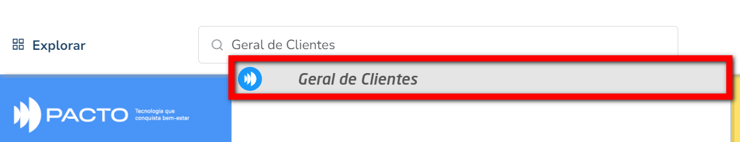 1. Na lupa de busca do sistema pesquise por “Geral de Clientes”;