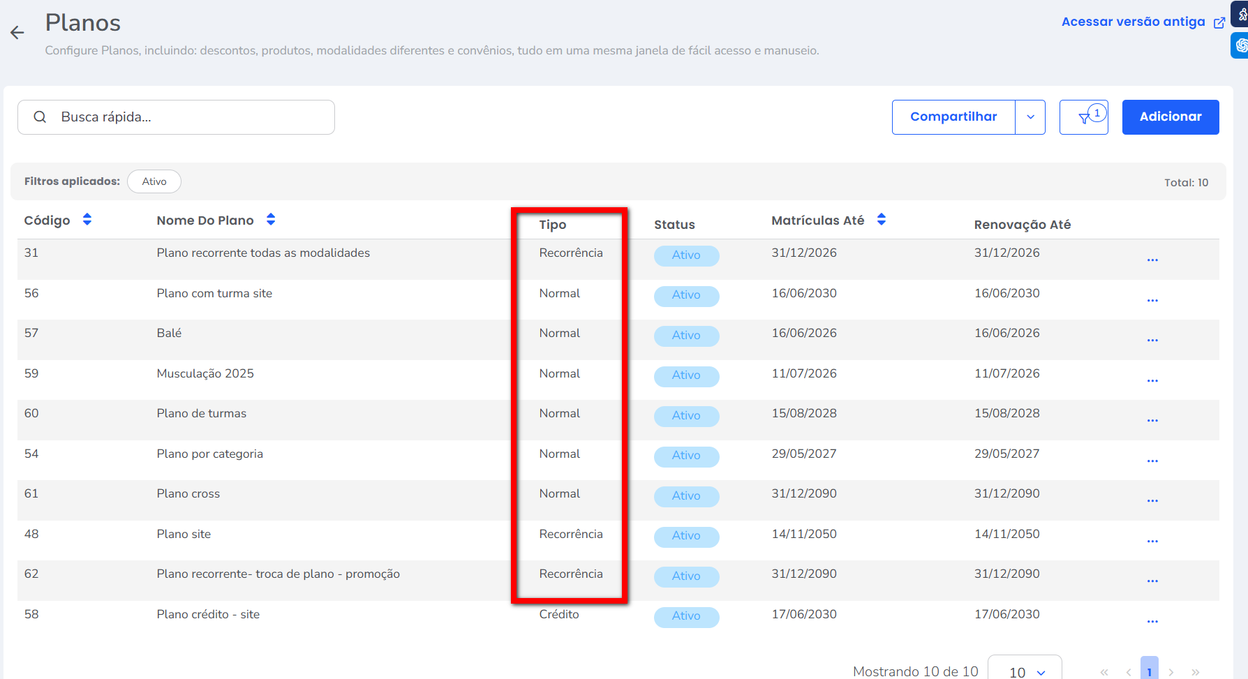 Para saber como cadastrar Plano Recorrente (Nova tela do Plano), clique aqui.