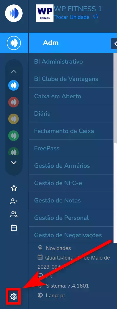 1. No menu lateral esquerdo do sistema localize e clique o ícone para acessar a tela de configurações do sistema;