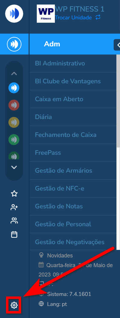 1. No menu lateral esquerdo do sistema localize e clique o ícone