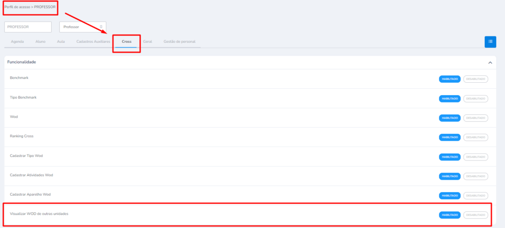 Foi criada a permissão “Visualizar WOD de outras unidades” no Perfil de Acesso do Treino