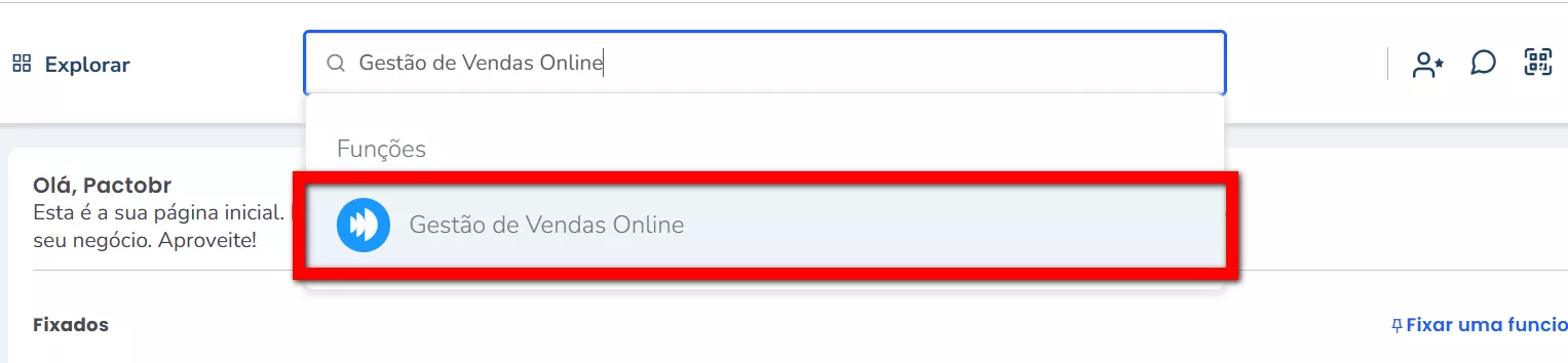 1. Na lupa de busca do sistema, pesquise por “Gestão de Vendas Online“;