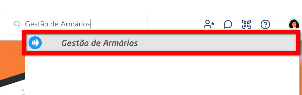 1. Na lupa de busca do sistema pesquise por “Gestão de armários”;