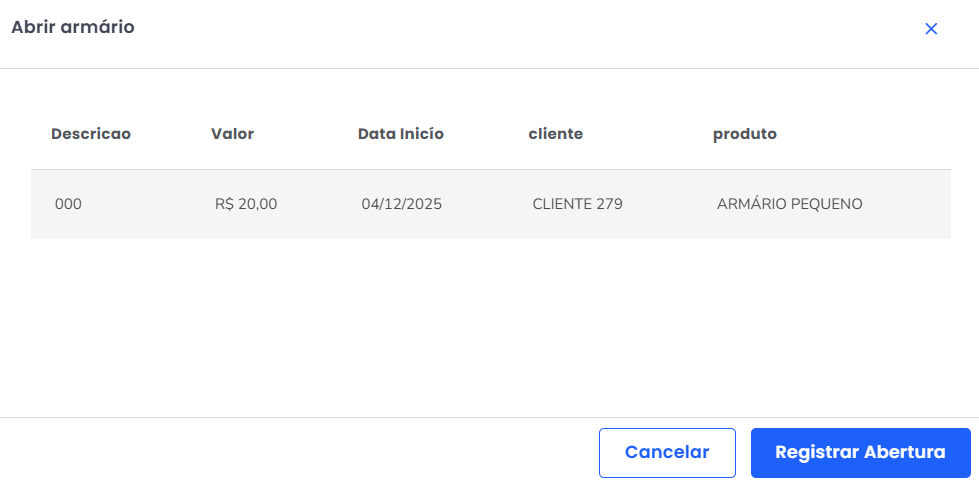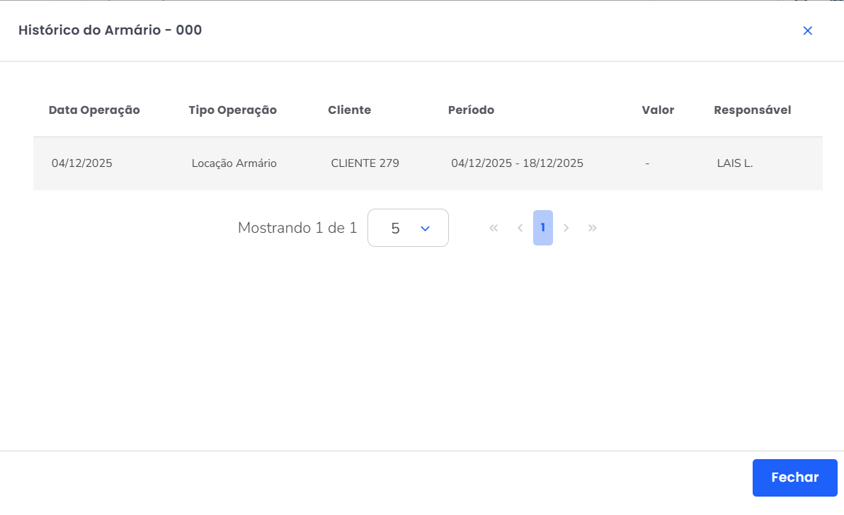 - Situação: selecione a situação do armário que deseja visualizar — Aberto, Fechado ou Inativo;