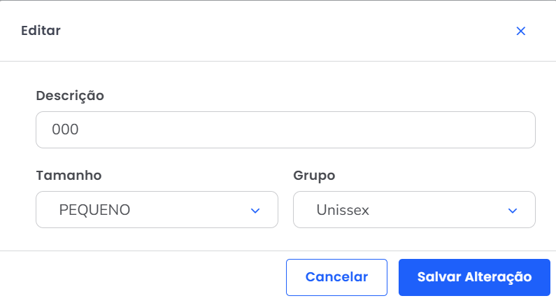Observação: por padrão o sistema apresenta 3 opções de tamanho, mas se desejar cadastrar mais tamanhos, basta digitar “Tamanho de Armário” na lupa de busca e clicar na opção referente.
