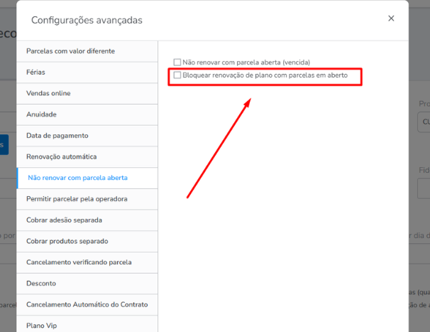 Para ajudar academias a manterem um controle financeiro mais rígido, agora é possível bloquear a renovação de planos para alunos com parcelas em aberto ou vencidas.