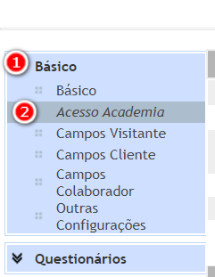 2. Será apresentado um pop-up, clique na guia “Básico”, depois em “Acesso Academia’‘;